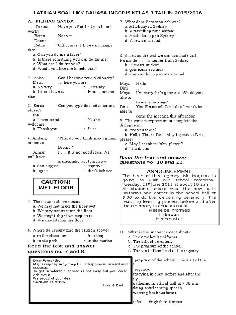 Contoh Soal Bahasa Inggris Kelas 8 - 0809 Uts Genap Bahasa Inggris Kelas 8 Pdf Nature : Contoh soal yang ingin kita share untuk kali ini berkaitan dengan materi bahasa inggris kelas 8 yaitu soal materi obligations, prohibitions, and.